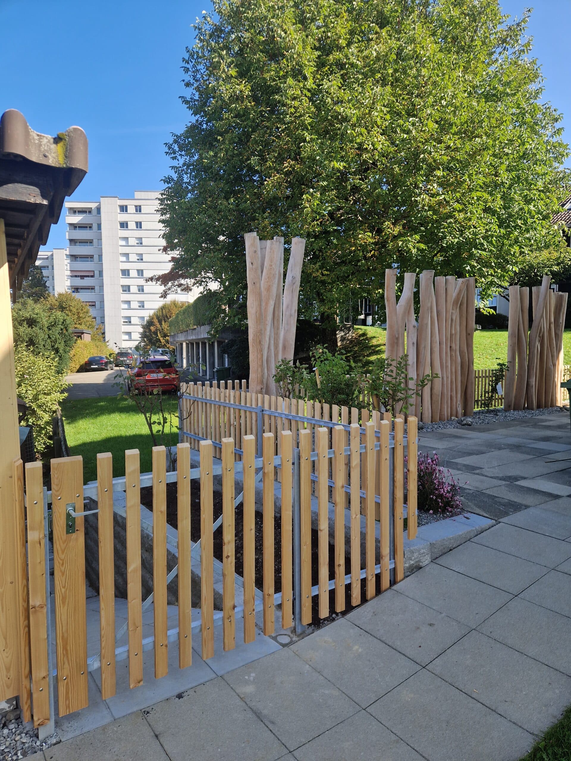 Der Staketenzaun ist eine der ältesten Zaunarten und verleiht jedem Garten oder Grundstück eine natürliche, charmante Atmosphäre. Ursprünglich aus der Landwirtschaft stammend, wird der Staketenzaun heute sowohl in modernen als auch in traditionellen Gärten gerne verwendet. Der Staketenz aun besteht aus vertikal angebrachten, schmalen Latten, die in regelmässigen Abständen miteinander verbunden sind, und lässt sich sowohl als reiner Sichtschutz als auch als dekorative Umrandung nutzen.