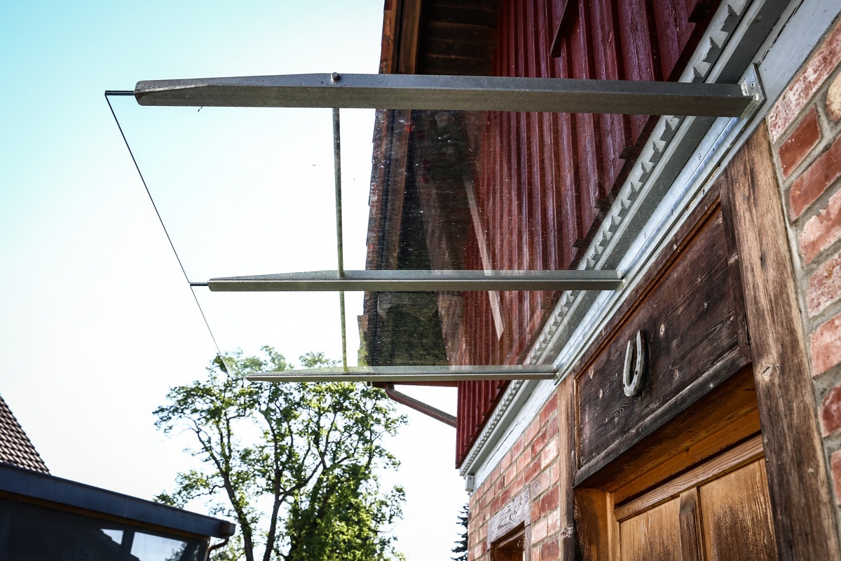 Ein Vordach ist eine praktische Lösung, den Eingangsbereich eines Hauses oder Gebäudes zu schützten und verschönern. Es handelt sich um eine überdachte Erweiterung des Eingangs, die nicht nur vor Witterungseinflüssen wie Regen, Schnee oder Sonne schützt, sondern auch das Gesamtbild des Hauses aufwertet. Unsere Vordächer werden in unserer eigenen Schlosserei geplant und erstellt und können an die individuellen Bedürfnisse und den Stil eines Hauses angepasst werden.